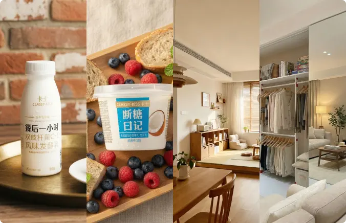 明图基于S-GPT多模态大模型,专为企业业务场景打造。可根据不同需求创作多形式商品图片,为单一产品生成多场景效果图与产品图。用户仅需输入提示词,即可快速获得多风格、多颜色、多物品元素的智能生成图。